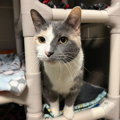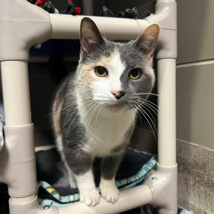 Kitty is youthful in temperament and activity - she is a lot of fun. She loves the laser toy, and also plays with her mouse toy. She loves an open window and she's good at hiding in cabinets - you never know which one she's in! You can have some good conversations with Kitty as she's quite the talker.