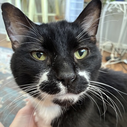 Pipevine Swallowtail is one of the most affectionate and gentle cats I've met. It turns out that he was named after a stunning butterfly- which makes sense because he's super social. He was seeking me out the very first day and is always popping out to say hello with his quiet meows and then asking to be pet or brushed. He loves to sit next to me and purr on the floor or just be close by in the same room and take a nap. He likes to sleep in a random box of tissue paper under the bed and seems to like sitting on paper elsewhere too. He is very relaxed, or maybe lazy, and I have only seen him push a toy or two but then lose interest. He also likes my dogs, but doesn't overwhelm them. He free-feeds well so far and has been getting back up to his goal weight slowly but surely. He uses the litter box consistently and has only jumped on one piece of furniture to get my attention. I haven't been able to get him to jump onto my lap just yet, but maybe that's not his thing! Please email at Astanton10@alumni.uwosh.edu with any questions!