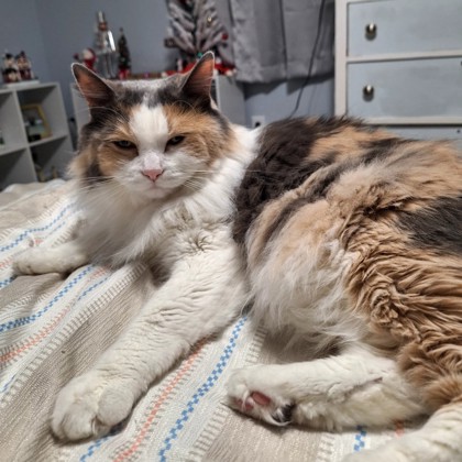 I love people. I love getting chin and ear rubs and cuddling up with humans. I like to be included in what's going on. I have lots of beautiful fur, which I'm hoping you can help me keep looking nice.
