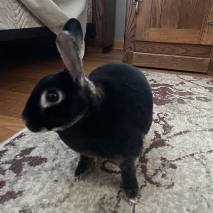 This rabbit is available for adoption from the comfort of a foster home! Here is what her foster parent has to say about her.