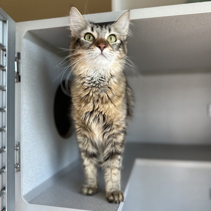 This pet comes with an implanted 24PetWatch microchip and free registration into the 24PetWatch pet recovery service. For more info call 1-866-597-2424.