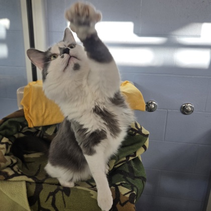 Emmy will need to be the only cat in the home, he can't live with other cats or small animals, but he has more than enough energy and love to be your entire world.