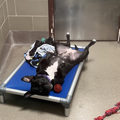 Dior is Jules' staff pick! Dior is a wonderful shy sweet lady! She LOVES to snuggle, either in her blankies with her stuffed toys, or in her fav person's lap. She also is a great walker - she gets all wiggly and excited! Come on in to meet this sweet girl if you think she could be your new pal :)