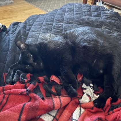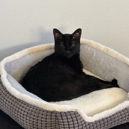 Pocahontas likes to sleep on top of a pillow next to someone's head in bed, cuddly and protective of her friends. When she plays, she often chirps in excitement as she carries toy mice in her mouth. She is a curious confident cat who has been interested in new spaces and people. She has exposure to other cats and dog. She can be extremely loving and cuddly, and also has a touch of spice in her personality. An excellent playmate and companion.