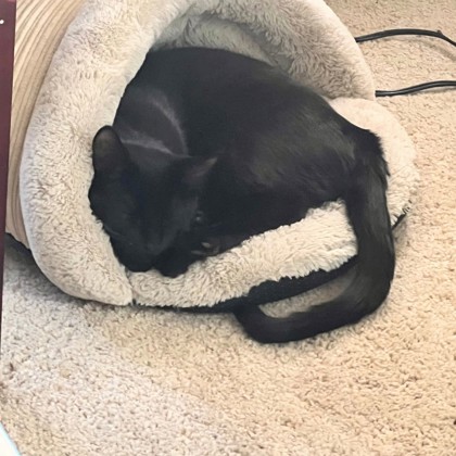 Jelly is a sleek, inquisitive boy with a playful streak that lights up any room. Like a curious shadow, he follows you quietly at first, sizing things up with cautious charm. Give him a moment-he warms slowly, but once he does, you'll find him sprawling nearby, content in your orbit. Pets are a privilege he grants only to the patient, though a tasty treat speeds the process (he's shamelessly food-motivated). A sunny window ledge and a cozy nook for naps are his non-negotiables. Earn Jelly's trust, and his gentle loyalty will melt your heart.