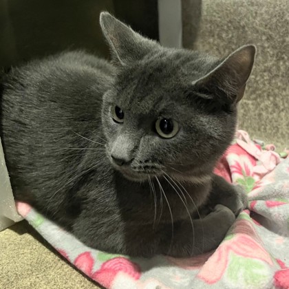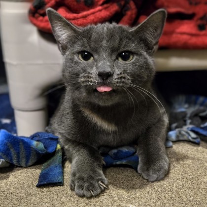 Spicy is makes me smile! She makes biscuits the entire time you spend with her! She loves a little Churu treat and will come out for pets and seems to just want to be loved! Please come and check out Spicy, she does not match her name :) She is such a beautiful blue kitten!
