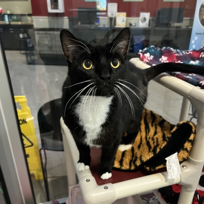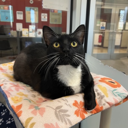 Midnight is Jackie's Volunteer Pick: "Midnight is the sweetest boy! He loves to be petted and gives the best head butts. He is calm, loving, and friendly. Midnight is a gorgeous tuxedo with beautiful eyes."