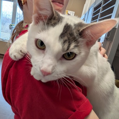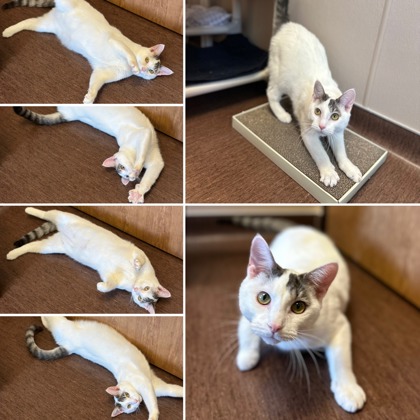 Hi, come meet Gunji! He loves to play and is always waiting right at the front of his window to meet you. The minute you open the door he loves to crawl on to your chest for cuddles and pets. He likes to sit and take in all the attention while snuggling up against your neck and face. His favorite toys are mice or anything with a string attached he goes crazy for! We would love to find him a loving home! He's waiting just for you!