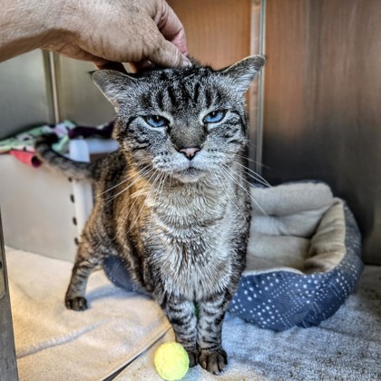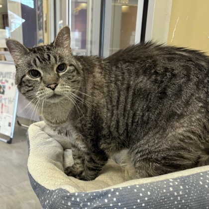 This pet comes with an implanted 24PetWatch microchip and free registration into the 24PetWatch pet recovery service. For more info call 1-866-597-2424.