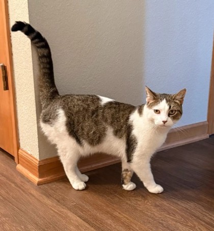Ruby is a calm, sweet, happy cat. She enjoys getting pets and sometimes gives kisses. She loves attention and interactive playtime with various toys. She's a curious kitty who enjoys exploring her surroundings and inspecting things she comes across. She typically wants to be in a room with her human. She is vocal at mealtimes. If you are interested in meeting Ruby please contact her foster parent at brookfostering@gmail.com.
