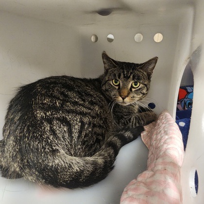 This pet comes with an implanted 24PetWatch microchip and free registration into the 24PetWatch pet recovery service. For more info call 1-866-597-2424.