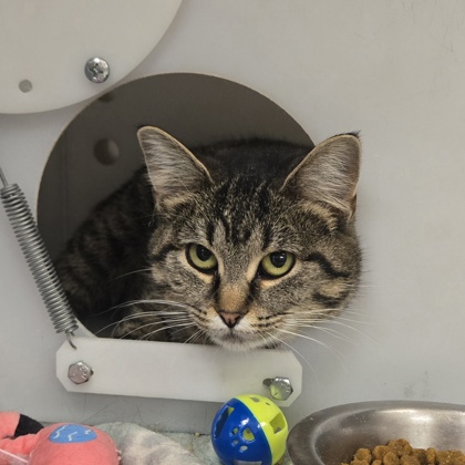 This pet comes with an implanted 24PetWatch microchip and free registration into the 24PetWatch pet recovery service. For more info call 1-866-597-2424.