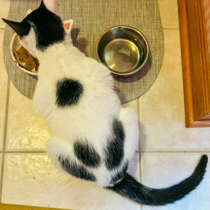 Theo is a sweet guy with a back full of polka dots and a heart full of love! He's a perfect kitten because he loves to play (his favorite being a feather toy) but he's happy to snuggle after playtime. He would be great in a home with other animals (he really likes following our resident dogs) or kids. He certainly doesn't shy away from activity, in fact he likes to be right in the middle of it! Please email if you would like to meet Theo in our Cedarburg home. Please email us at Ertl.tammy@gmail.com