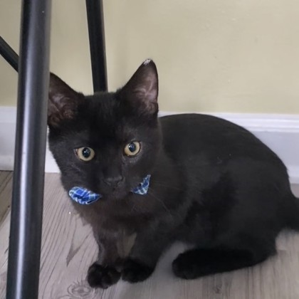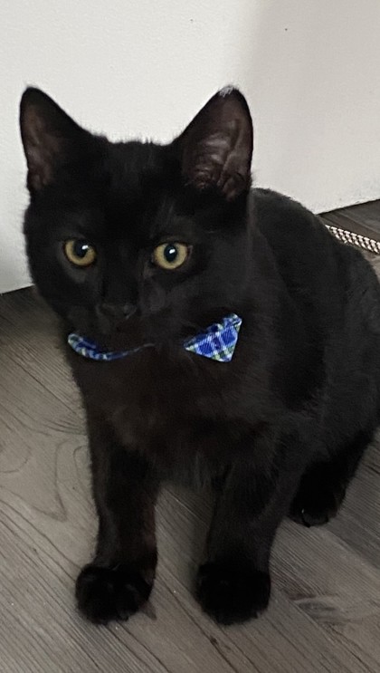 Mars' foster parent says Mars is a love machine. Either he's playing, doing flips, chasing a wand toy or he's in my lap getting pets. He loves treats, he's really curious & brave. Really sweet, playful, & overall a happy purring kitten.