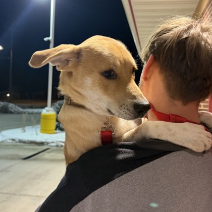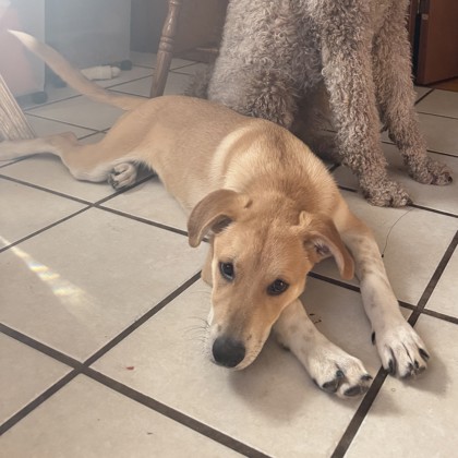 Blondy's foster parent says Blondy is so sweet! She is a high energy puppy with lots of personality. She loves to play and give kisses, She does great with her crate training and playing with my dog!