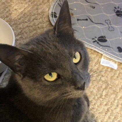 "Noodle is a beautiful little smoky grey bundle of fun. She is very friendly and loves a good lap-time cuddle when she's finished playing. Her shiny fur coat is a special silver and very unique, just like her personality. Her foster mom calls her Nina and sweet girl! She loves to greet new friends with a cheerful chirp."