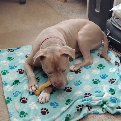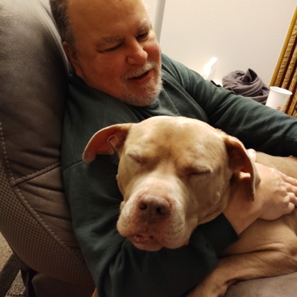 Caleb walks like a pro on leash and enjoys exploring our neighborhood while out. He is well behaved in our home. He LOVES his crate and freely comes & goes as he pleases. He is playful and enjoys a good chew toy or bone. Caleb knows 'sit' and 'stay' cues and will patiently wait to be given his food dish. He truly enjoys being with his people here in the home and has done well riding in a vehicle. He is a big cuddler and very loving!