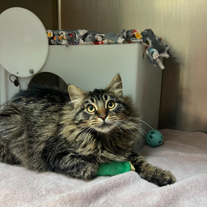 This pet comes with an implanted 24PetWatch microchip and free registration into the 24PetWatch pet recovery service. For more info call 1-866-597-2424.