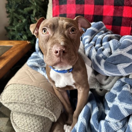 "Rudy Roo is all puppy! He loves to play and run, but he really loves to wrap up the day with a warm blankie and some good cuddles. He is a very smart and very social puppy. He loves people, and has done well with other dogs he's met in the foster home. In the foster home, he is mostly potty trained and does well in his crate. He has been practicing his basic commands and knows how to sit quietly before his crate door is opened."