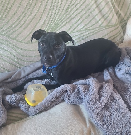 "He's super snuggly and sleeps through the night. He's also very smart and food motivated. He has a lot of daytime energy and loves to play fetch and tug, but gets very sleepy in the evening. He likes a variety of toys and is very appreciative of new ones. I brought him to work with me and he enjoyed meeting new people, but was able to play quietly on his own"