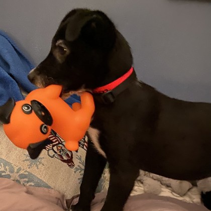 Snowball's foster parent says Snowball is a playful girl. She loves playing with her toys or outside. Snowball also loves being around her people.