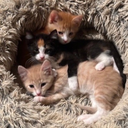 When playtime winds down, this sweet girl loves to snuggle in your arms or curl up with her siblings in the cat bed. She happily relaxes in your lap and expects gentle pets while she naps, purring contentedly. Noel will even wait patiently by the door for her favorite people, sitting politely until you scoop her up for a hug -- just not too long, because she has important kitten business to attend to. Noel is wonderfully soft-pawed and affectionate, and thrives on gentle attention. She is ready to bring joy, cuddles, and just the right touch of sass to her forever home. For a playful pair, adopt her sister Angel too... and let the fun begin!"
