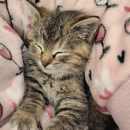 And fair warning-when the zoomies hit, Wisteria transforms into a tiny cheetah, zipping through the room at lightning speed with pure kitten joy. She's playful, affectionate, and endlessly entertaining, making every day brighter just by being around.