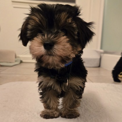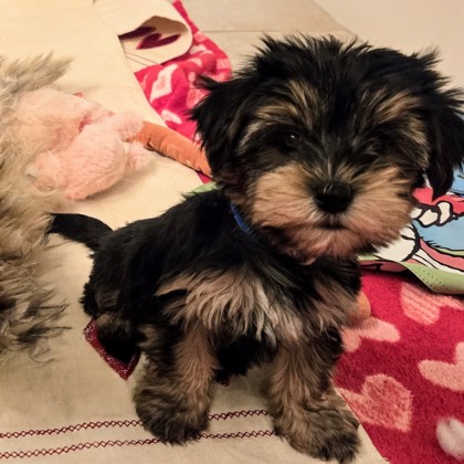 Meet Cuddles! Who doesn't love a good cuddle! Well this little guy sure does. He is playful and fun and has the most adorable little hop when he gets that tiny body going! He enjoys playing with his siblings, especially his sister as they are pals in playtime and cuddles! LOL Cuddles is the quiet one and is also just ok with dragging a toy (usually bigger than him) to a soft spot to play by himself. He is doing well going out to go potty and does get a bit of the zoomies in the snow/grass! He has the best little face with a little black nose and his mustache and eyebrows are to die for! If you have any Cuddle questions or would like to set up a meet and greet, please email me at kellybreville@gmail.com