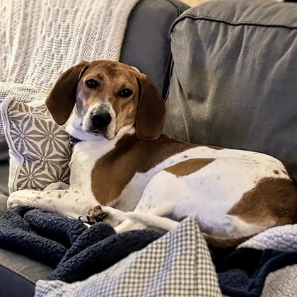Miss Kitty is an easygoing, curious companion who loves exploring the world nose-first. She's happiest sniffing around the yard or house and chasing after chew-toys. On walks, she's steady, attentive, and genuinely enjoyable to have by your side. With her gentle nature and playful spirit, she'd be a wonderful match for anyone looking for a loyal, active partner to share everyday adventures.
