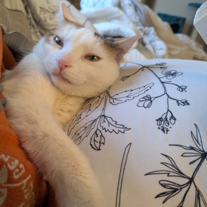 Khaleesi is a very cuddly sociable cat. She warms up to strangers almost immediately and likes to hang out. She's curious and playful and has an easygoing nature. She'd make herself at home with anyone who wants another member of the family.