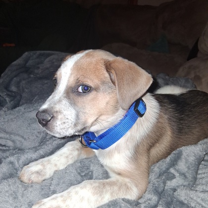 Princess B is a 2 month old little girl who loves kisses and cuddles. She is very sweet and plays nicely with her siblings. She loves a good chew toy and is just starting to carry around the stuffies. She has beautiful markings, the pictures don't do her justice. In our home she is doing well with the crate.