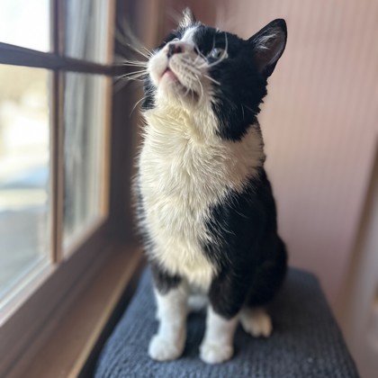 Meet Jeff, this handsome guy was found outside but he certainly is enjoying life "on the inside" now! His favorite things seem to be sitting on our laps and gazing in our eyes (for real), chasing the feather toy daily and enjoying the luxury of feasting on wet cat food. Jeff is a gem. He's outgoing and no problems with the litter box in our home. He would be thrilled for a warm home to call his own. If you would like to meet Jeff in our Cedarburg home please email Ertl.tammy@gmail.com