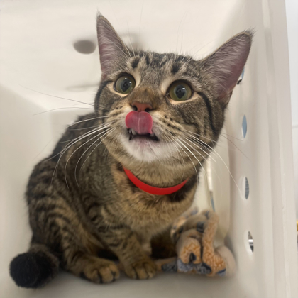 This pet comes with an implanted 24PetWatch microchip and free registration into the 24PetWatch pet recovery service. For more info call 1-866-597-2424.