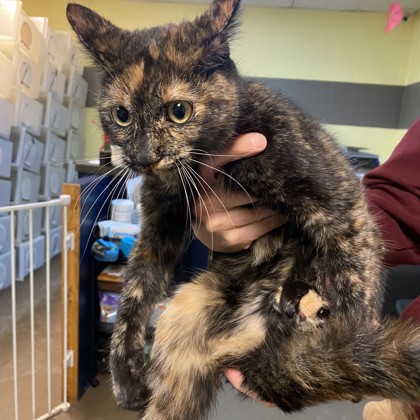 This pet comes with an implanted 24PetWatch microchip and free registration into the 24PetWatch pet recovery service. For more info call 1-866-597-2424.
