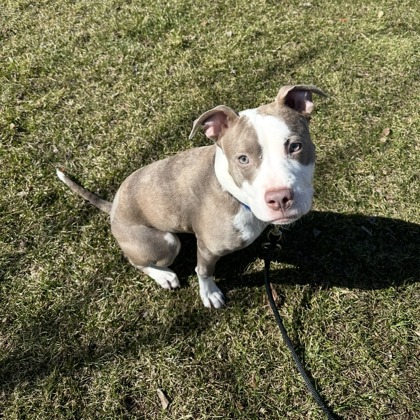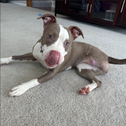 "Nova is an awesome young pup who does not let being a three-legged companion slow her down. As she went for walks in the first two weeks recovering from surgery, most people who stopped to pet her couldn't even notice she was missing a leg because she has adapted so well at a young age. She is very attentive during training and has potential to learn plenty more tricks, and it took her only a few days to learn the command "sit." Many people ask if she can still sit and lay down with the leg... Yes she can! Nova having 3 legs does not stop her from being active, participating in normal training, and so much more! She has a ton of puppy energy and benefits well from lots of exercise, but one thing she is good at is entertaining herself with her toys alone in another room. She is a cuddle-bug and when playtime is up you can find her as close to you as possible."