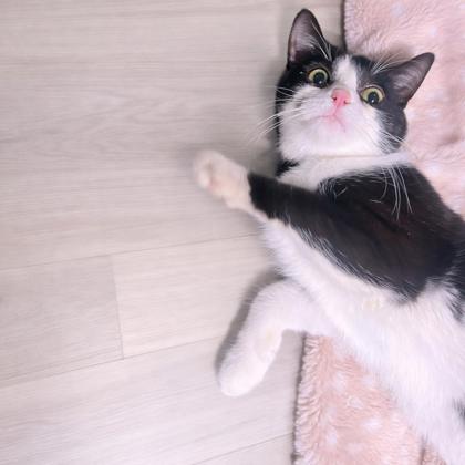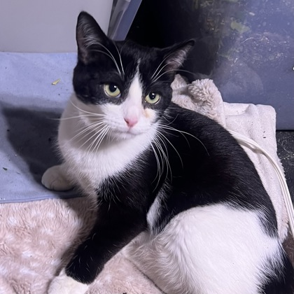 "Hi! I'm Ziti and my foster mom says I'm perfect. I'm a little scared at first but as soon as I know you're safe I'm all purrs! I'm looking for someone that's patient, gentle and loving. I get along with dogs, cats and kids as long as they approach gently (: in only two weeks I have made SO much progress and I will be a perfect kitty in no time! Maybe I can join your family?"