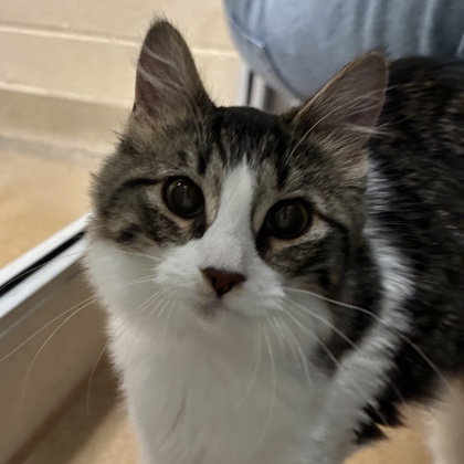 This pet comes with an implanted 24PetWatch microchip and free registration into the 24PetWatch pet recovery service. For more info call 1-866-597-2424.