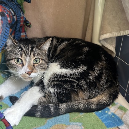 This pet comes with an implanted 24PetWatch microchip and free registration into the 24PetWatch pet recovery service. For more info call 1-866-597-2424.