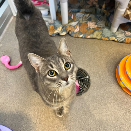 This pet comes with an implanted 24PetWatch microchip and free registration into the 24PetWatch pet recovery service. For more info call 1-866-597-2424.