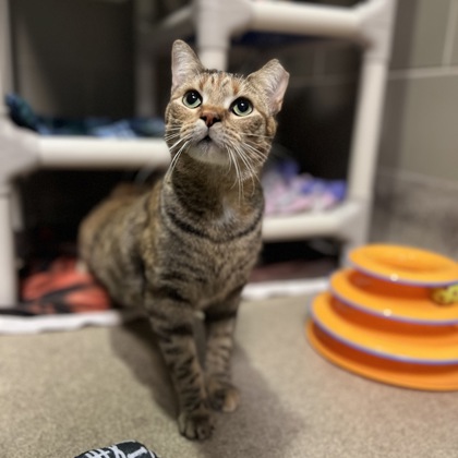 This pet comes with an implanted 24PetWatch microchip and free registration into the 24PetWatch pet recovery service. For more info call 1-866-597-2424.