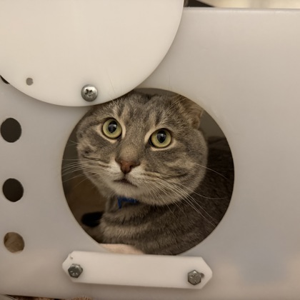 This pet comes with an implanted 24PetWatch microchip and free registration into the 24PetWatch pet recovery service. For more info call 1-866-597-2424.