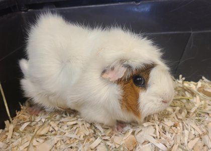 Marshmallow's foster parent says Marshmallow is a curious and inquisitive guinea pig. She is a little bit shy at first. Marshmallow loves to explore new toys, treats, and hides. She usually can be found right next to her friend, Oreo.