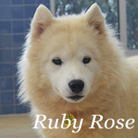 UPDATE: May 11, 2016 – Our final 3 rescued Samoyeds are officially ready to find forever homes! Ruby Rose, Red Scarlett, and Sapphire will be available for adoption at the WHS Milwaukee Campus when we open at noon on Thursday, May 12! It’s very important for potential adopters to realize that these three pups are very sweet, but incredibly fearful and timid. They will need a lot of patience, positive reinforcement, and training before they come out of their shell. They’ve never been part of a family and are very anxious around people. Their fearfulness paired with their intelligence makes them excellent and determined escape artists, so they would benefit greatly from a fenced-in yard and complete, leashed supervision when outdoors.