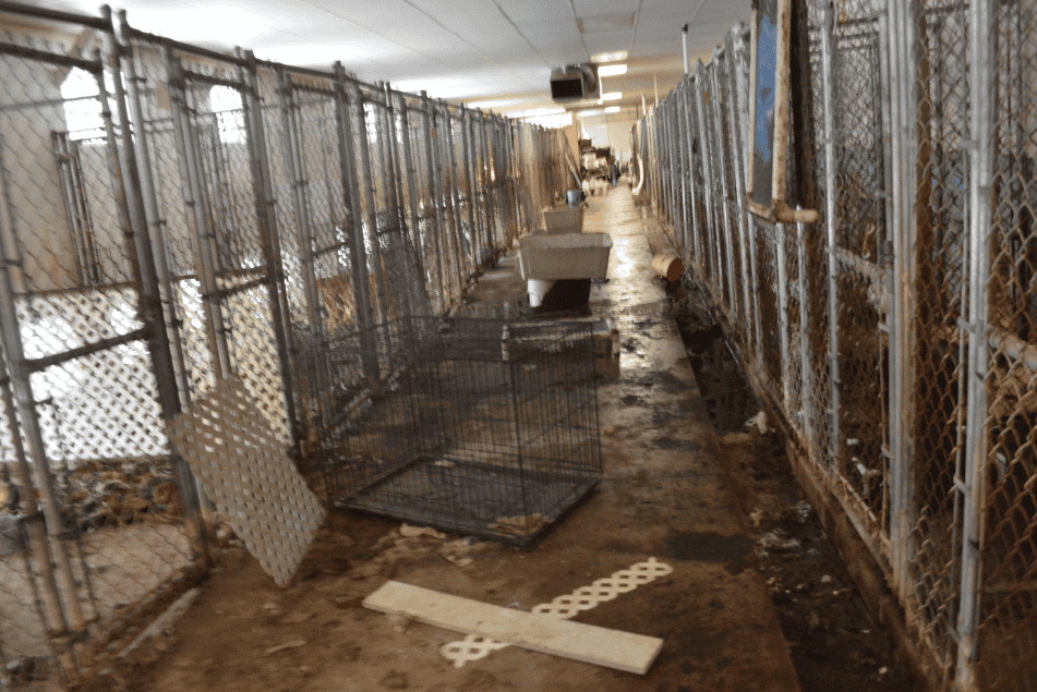 The floors were concrete and feces covered. There was little to no ventilation, very little room for dogs to exercise. There were few toys and dry areas for them to rest.