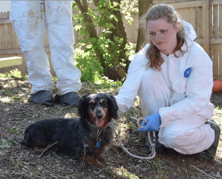 WHS received 80 dogs, 12 cats and 2 pigs from the seizure. Nearly every animal rescued from the deplorable conditions was in need of some medical attention. WHS treated dogs for respiratory infections, ear and eye infections, glaucoma, topical wounds, fleas, dental disease and paw injuries from standing in urine and feces.