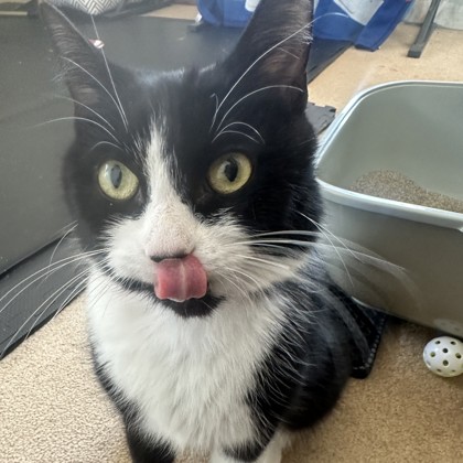 Moo's foster parent says Moo is a 1 year old explorer who absolutely adores pets & love! She is pretty quiet for the most part and loves any cozy little spaces she can bundle up in! She was spayed during her stay at WHS but is recovering beautifully.