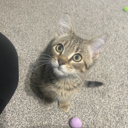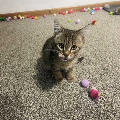 "Meet Kevin! This sweet little tan sandy tabby is ready for his next big adventure! He loves playing, climbing, cuddling and being around people! He has been doing well with other cats and dogs in the foster home. He loves chasing around crinkle balls, but after his energy runs out he is ready for cuddles, a nap! In the foster home he has been litter box trained! Kevin is a very curious little guy and is ready to meet his forever family!"