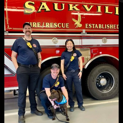 Momo absolutely loves people and wants to say "hi" to everyone, and the lucky ones might even get a few kisses. We visited a coffee shop, music store, and the fire department, and he was thrilled to meet everyone in his path! He's a joy to walk, staying non-reactive to other dogs, strollers, and bikes, as he's usually too busy sniffing and exploring the world around him.