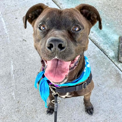 Momo is one of the happiest dogs you'll ever meet-his tail never stops wagging! He'd make an excellent hiking buddy, starting out with plenty of energy before settling into a relaxed, easygoing stroll.