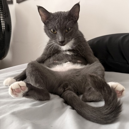 Since being in her foster home, Cortex loves spending her days cuddling up on the heating pad and sitting on the window cat tree, watching the birdies. Her preferred bedtime spot is at the end of the bed. Cortex will randomly start chatting with you and be prepared for the cutest little chirping noises you have ever heard.